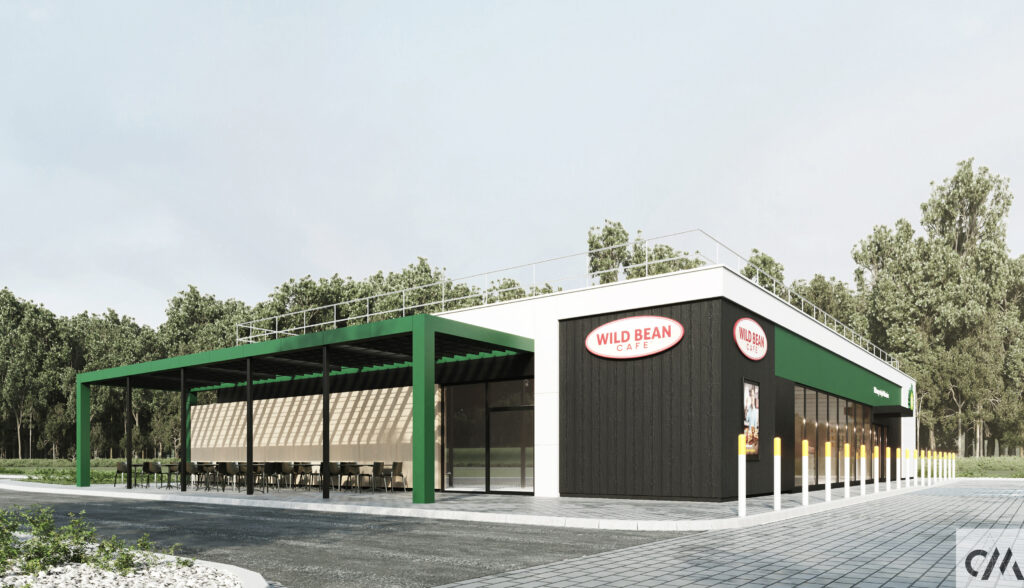 Faza: projekt wykonawczy wnętrz oraz elewacji powtarzalnego obiektu. Realizacja: 2022-2024. Powierzchnia użytkowa: 422m2.